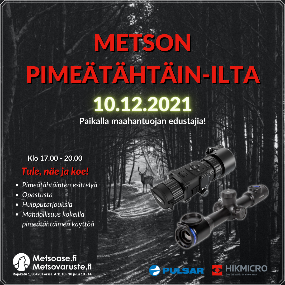Metson pimeätähtäin-ilta 10.12.2021 Metsoaseen myymälä, Rajakatu 1, 30420 Forssa. klo.17-20