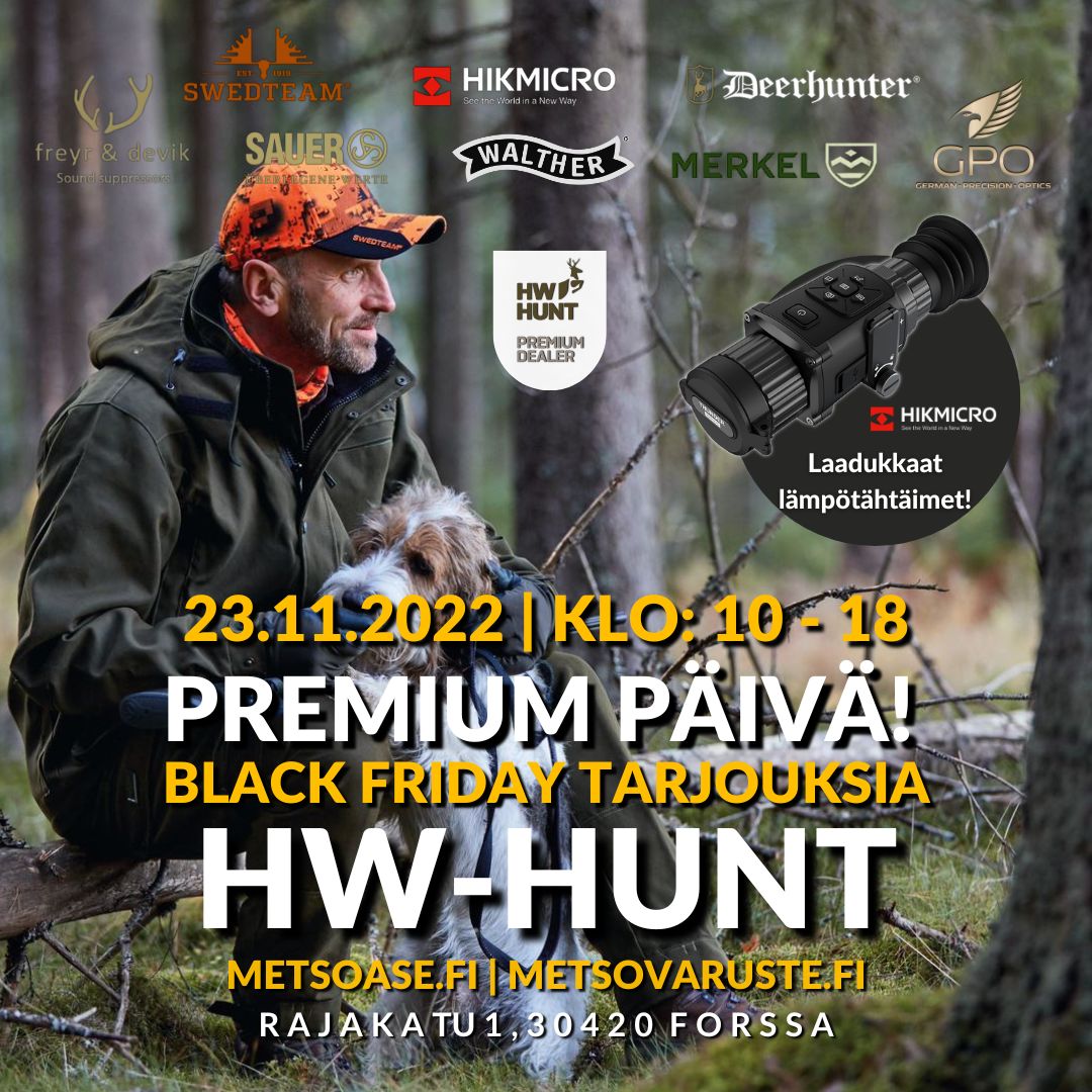 HW-Hunt Premium päivä Myymälässä 23.11.2022 klo:10-18 Erikoistarjouksia ja kaupanpäällisiä moniin eri tuotteisiin.