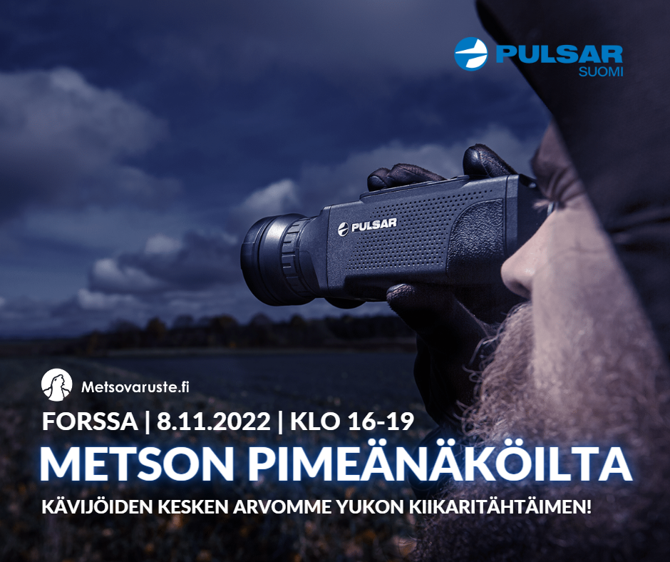 Tule tutustumaan pimeänäkölaitteisiin ja -tähtäimiin. Paikalla Pulsar maahantuojan edustusta. Mahdollisuus kokeilla tähtäimen kohdistusta ja tutustua valikoimaan.