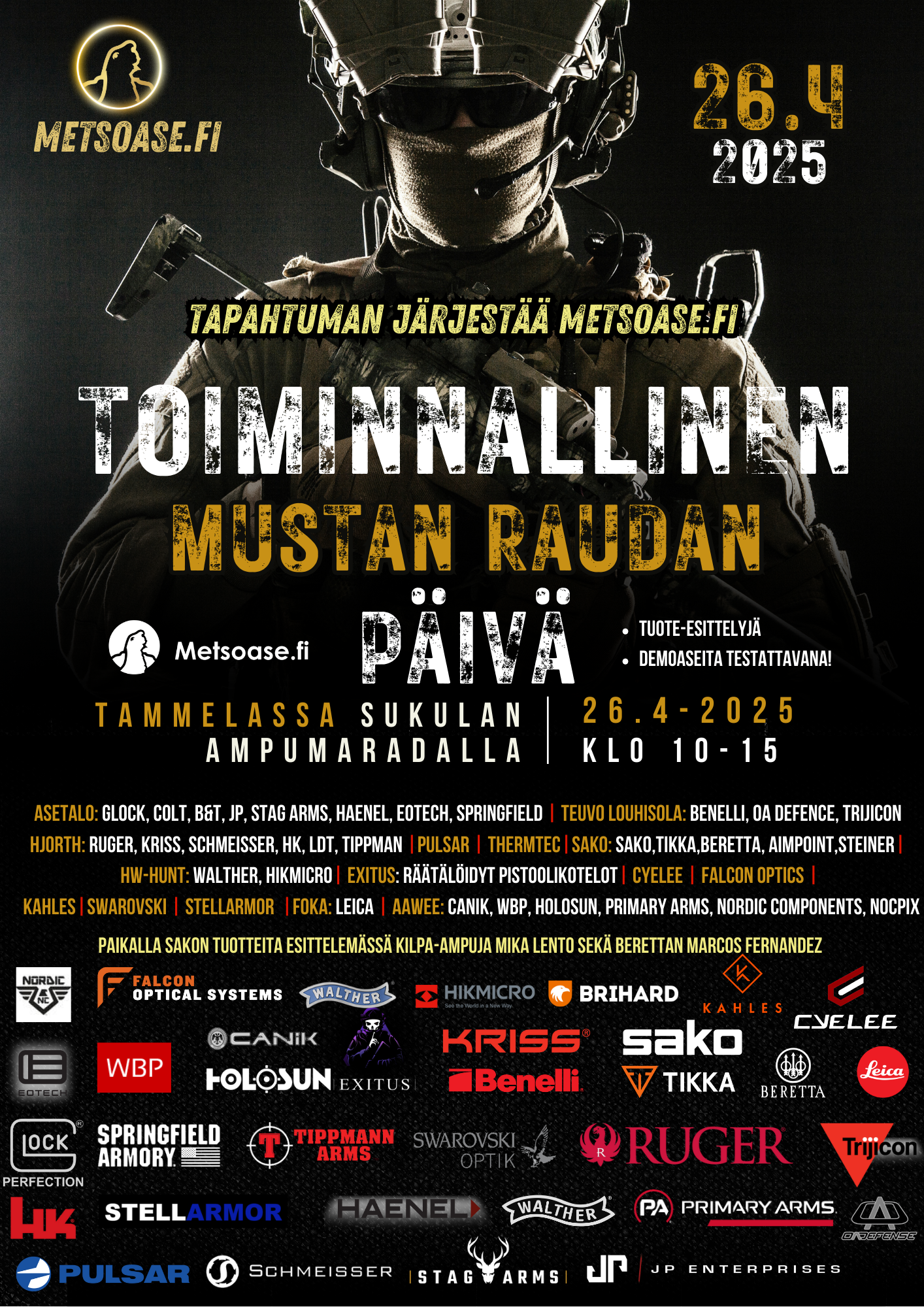 Tervetuloa vuoden odotetuimpaan toiminnallisen ammunnan tapahtumaan! Mustan Raudan Päivä kokoaa jälleen yhteen alan kärkinimet, harrastajat ja uusimman tekniikan.