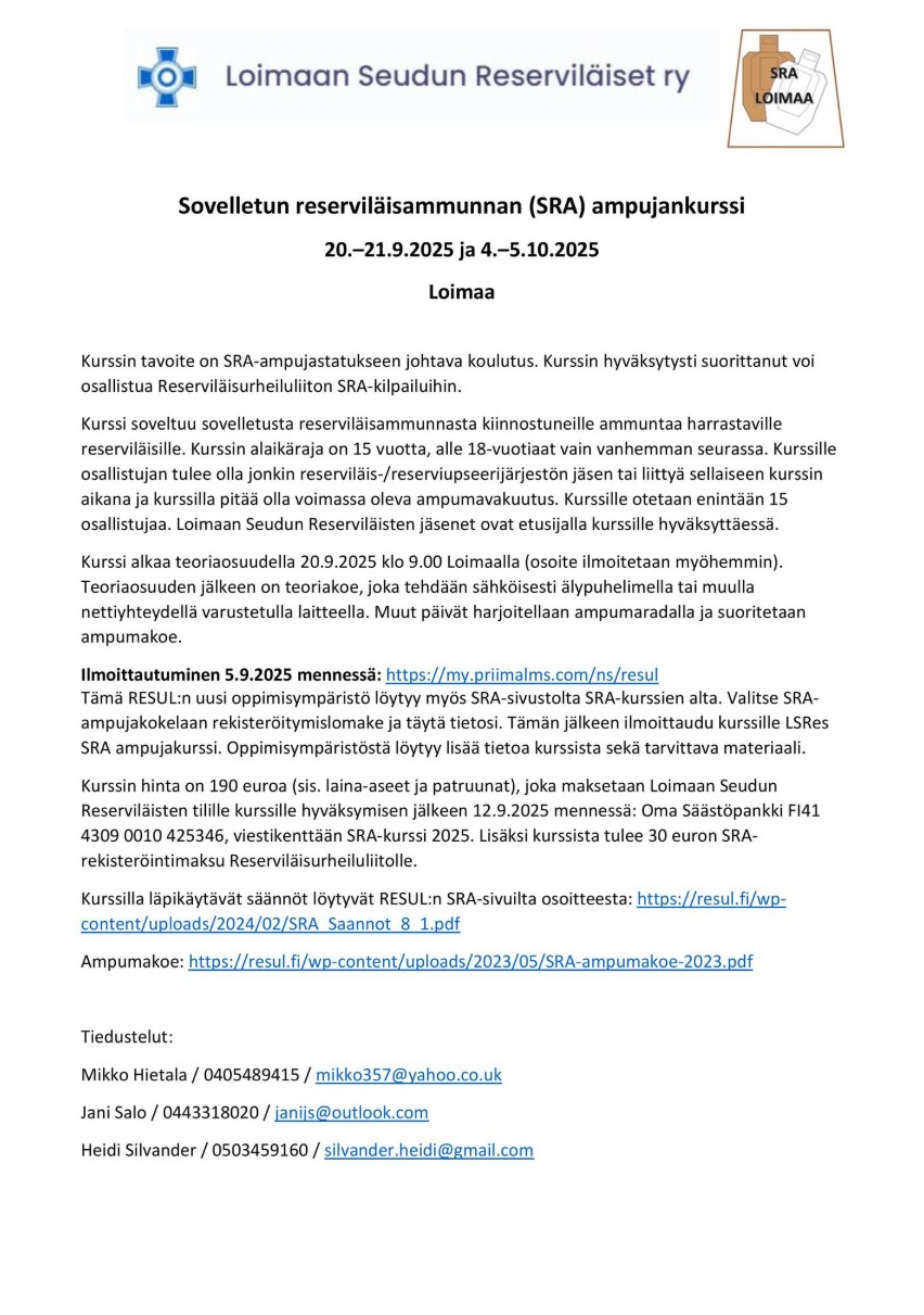 Aika: Lauantaina 9.5. klo 10.00 – 15.00 Paikka: Sukulan ampumarata, Tammela