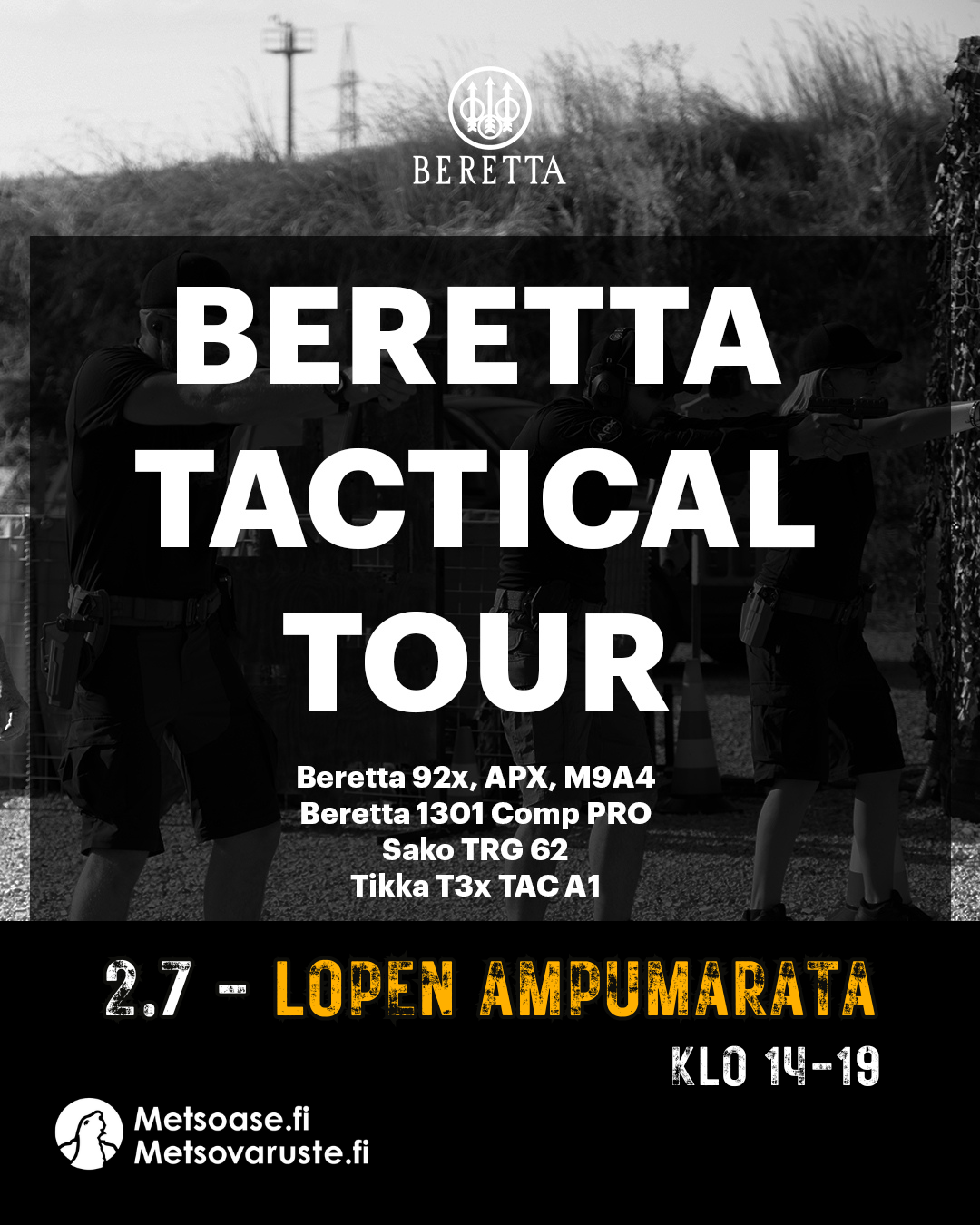 Beretta Tactical Tour järjestettään tiistaina 2.7.2024 Lopen ampumaradalla! Koeammuttavana on Beretta pistoolit ja toiminnallisen puolen haulikot.