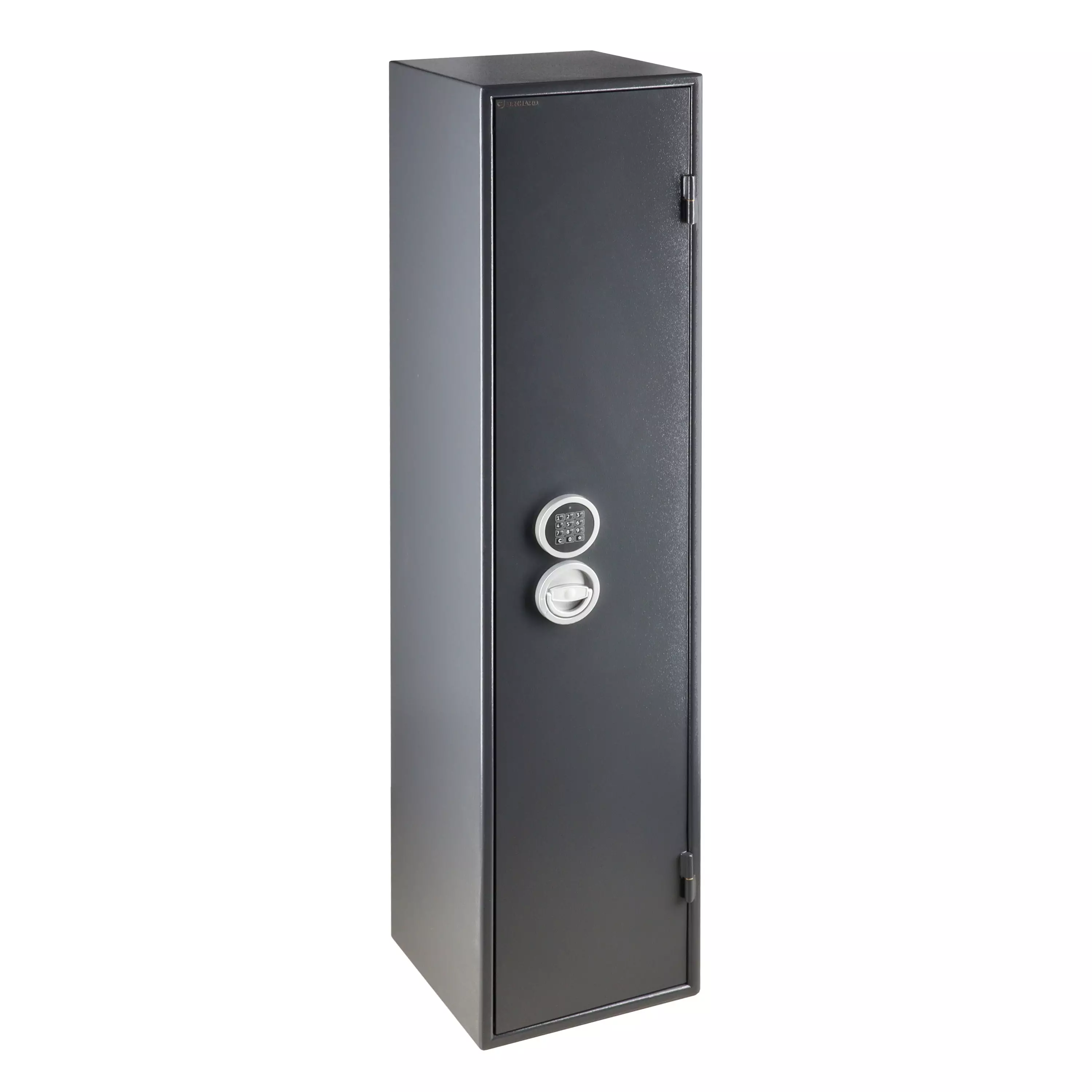 - Rakenne: Yksiseinäinen runko (3 mm) ja kaksiseinäinen ovi (52 mm), jotka takaavat kestävyyden ja suojaavat aseita tehokkaasti.