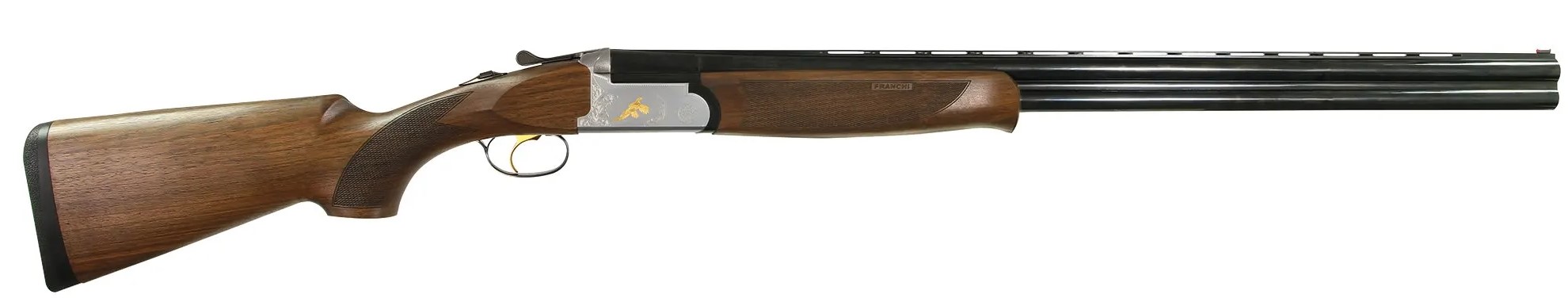 Franchi Elegante Eco 12/76 on perinteisellä puutukilla ja ja 28 tuumaisilla piipuilla varustettu italialainen päällekkäispiippuinen haulikko. Lukkorungosssa on kauniit fasaanikaiverrus koristeet.
