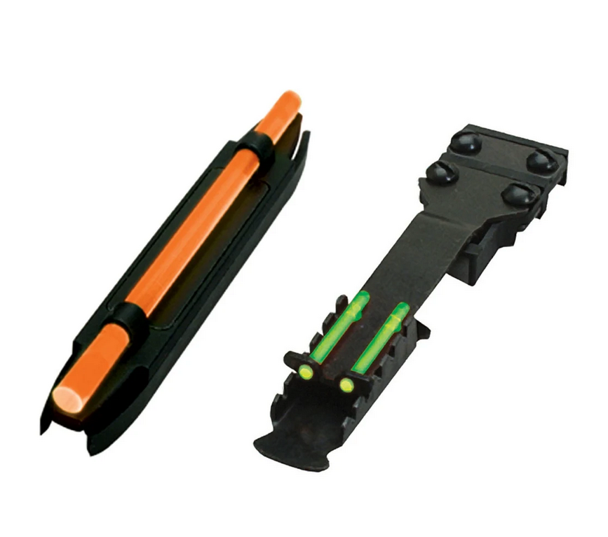 Etutähtäimen mukana 2 vaihdettavaa valokuitua: vihreä ja oranssi. Takatähtäimessä 2 kiinteää vihreää valokuitua.