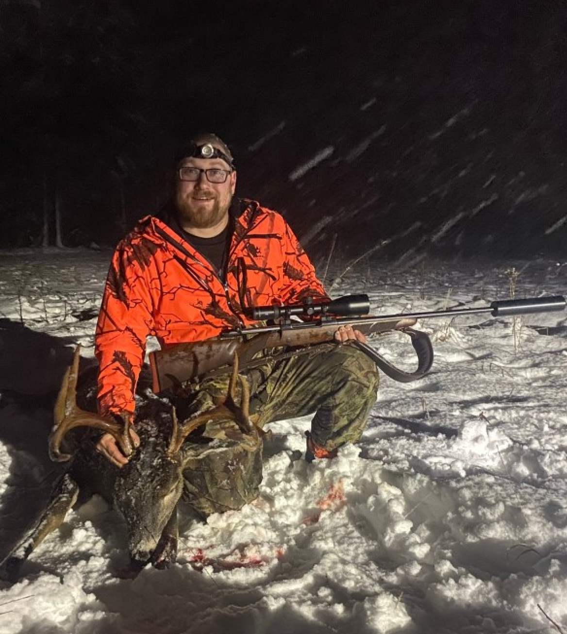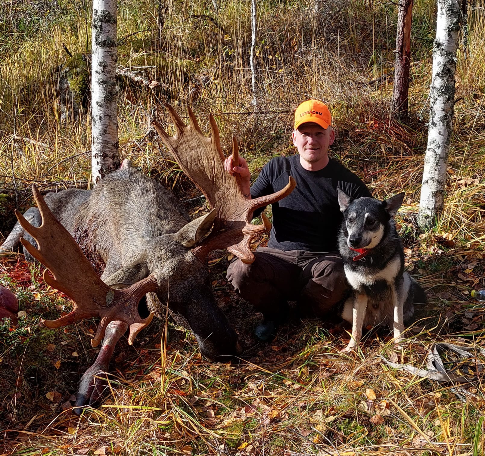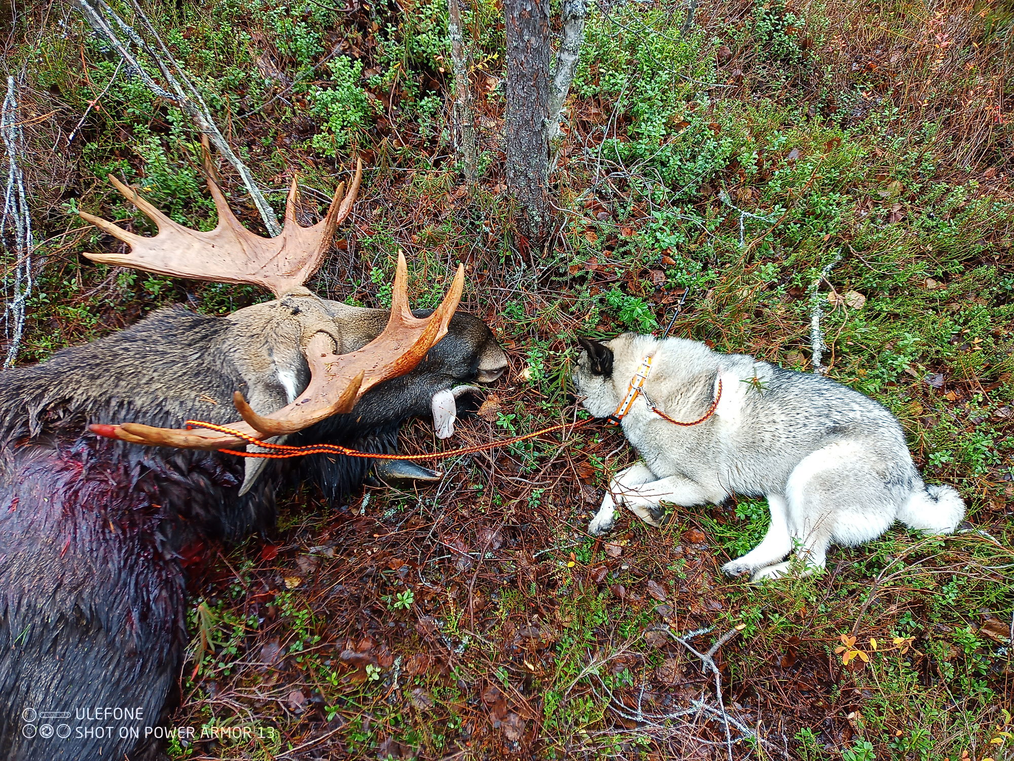 Omat koirat ajoi hirven jokeen ja lopettivat siihen, päätin mennä veneellä Ounasjokea alaspäin, moottori ei käynnistyny.. termos valui taskussa housut märiksi.. no päätin soutaa alajokea tunnettuun ylikulkupaikkaan passiin, ehdin olla noin 30 min ku kaveri ilmoitti että iso hirvi menny Rovaniemen tien yli,ei tietoa mikä hirvi ,, koiran panta ei paikantanu 5 minuuttiin ku meni joen yli, siitä kesti 15 minuuttia ku hirvi tuli joen ylikulkupaikalle missä olin passis , ammuin ensimmäiseen rakoon ja hirvi pysähtyi tiehän kuusen taakse, ammuin uudestaan ja hirvi lähti ku ohjus takaisin tulosuuntaan, sain vielä mahdollisuuden kun se kääntyi avonaiseen paikkaan ja ammuin niskaan ja hirvi kumoon!
