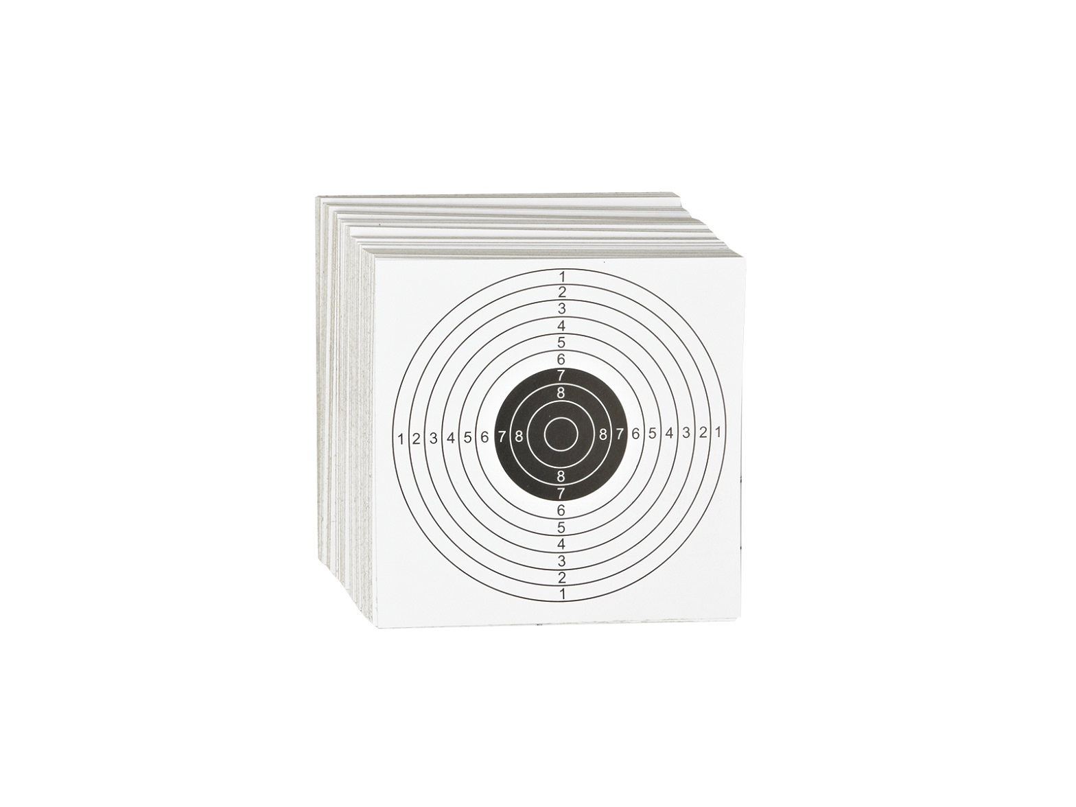 Perinteinen 14x14cm kokoinen ilmakiväärin maalitaulu tarkkuusammuntaan. Paketti sisältää 100 maalitaulua, jotka sopivat suoraan ASG maalitelineisiin.