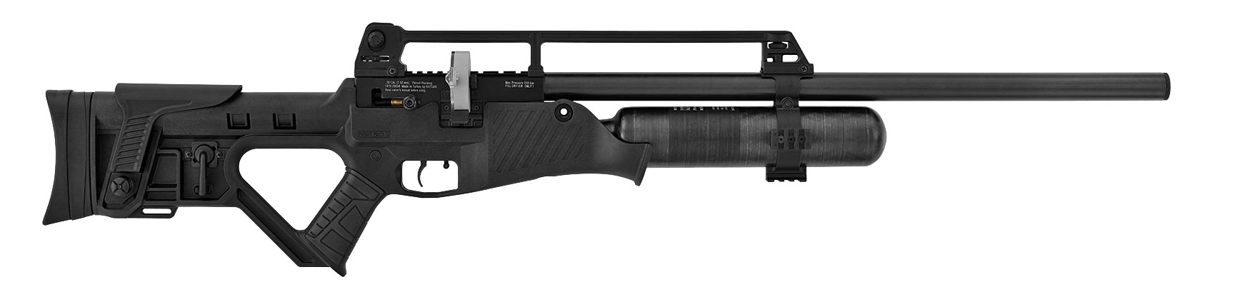 Hatsan Blitz Auto paineilmakiväär puoli- tai täysautomaatti valinnalla! Tehokas patentoitu ilmaoperoitu koneisto. 580 cc hiilikuituinen ilmasäiliö piipun alla voidaan täyttää 250 barin
