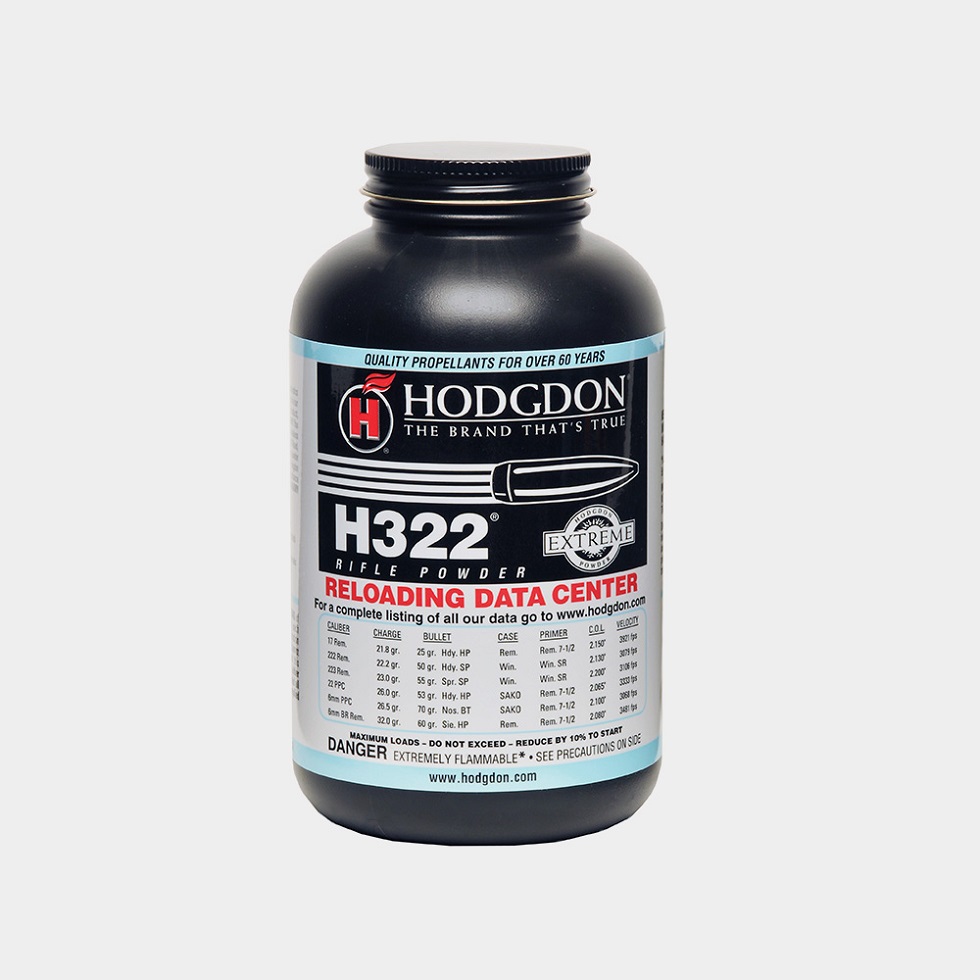Hodgdon H322 kivääriruuti, erittäin hienojakoinen ruuti jolla on voitettu lukuisa määrä Benc rest kilpailuja.