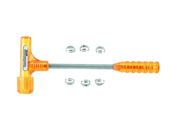 Mukana tulee 6 eri koon vaihdettavaa sovitinta joiden avulla saat katettua eri kaliberit. Purkulyönnin jälkeen ruuti jää vasaran sisälle ja itse luotiin tai hylsyyn ei jää toimenpiteestä mitään ylimääräistä jälkeä.
