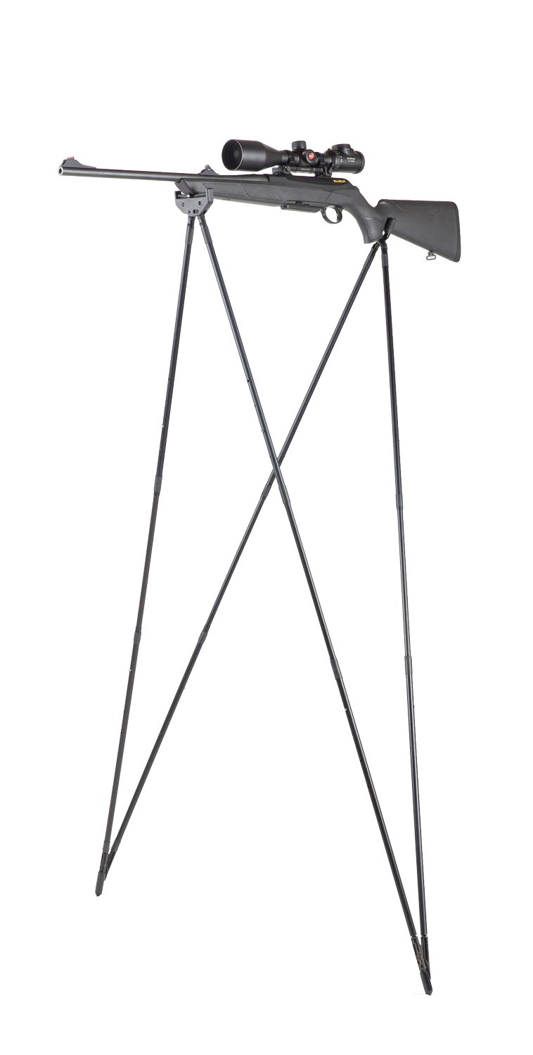 Ampumatuki metsästäjälle: korkeus pystytettynä: säädettävä 130-185cm, korkeus kokoon taitettuna: 65cm, paino 550g