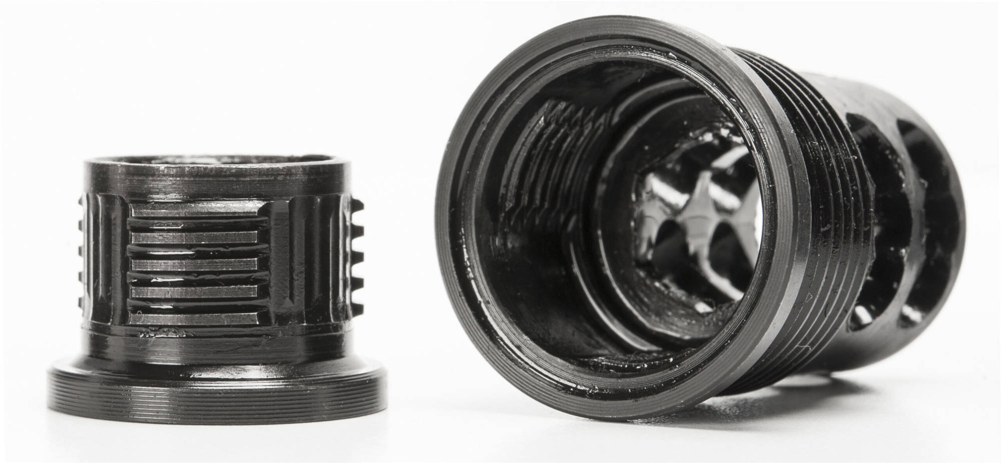 Adapterin ansiosta sama vaimennin käy usealle kierteelle ja kiinnittyy nopealla 60 asteen käännöllä.