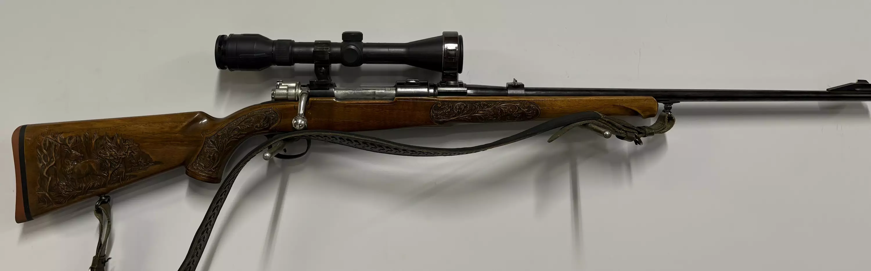 Puolassa tehdyt kauniit kaiverrukset. Mauser lukkoinen. Mukanan vanhaa otiikkaa.