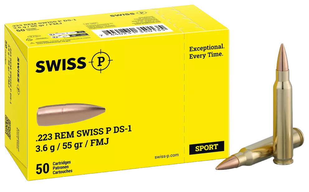 Swiss P .223 Rem 3.6g / 55gr FMJ on laadukas täysvaippainen patruuna rata-ammuntaan ja harjoitteluun. Sveitsiläinen valmistus ja tasalaatuinen lataus tekevät patruunasta luotettavan vaihtoehdon, kun tarvitaan tasaista suorituskykyä ja hyvää syöttövarmuutta itselataavissa ja pulttilukkoisissa kivääreissä.