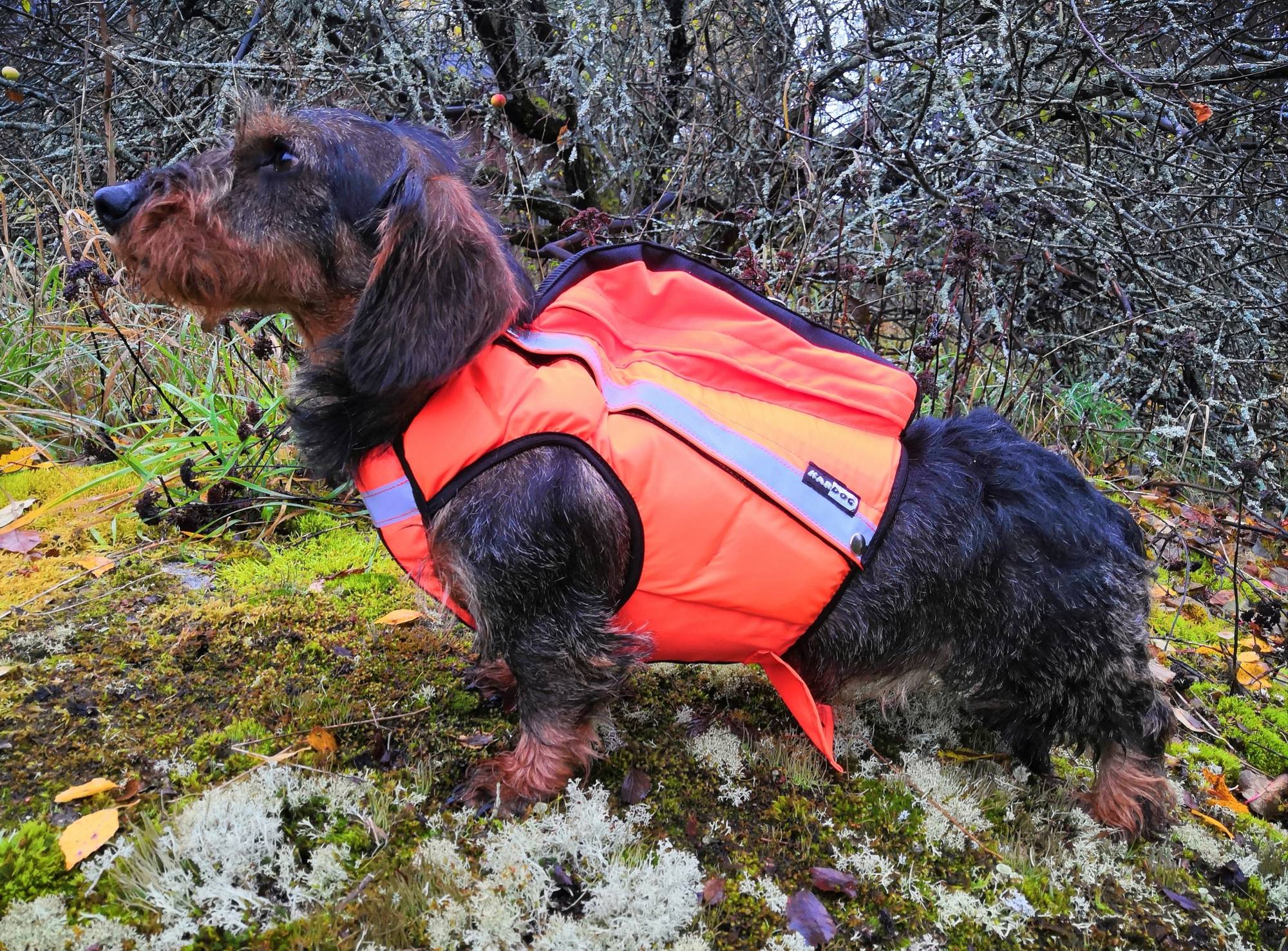 Kevyt kelluttava huomioliivi metsästyskoirallesi. Uusittu päälimateriaali!