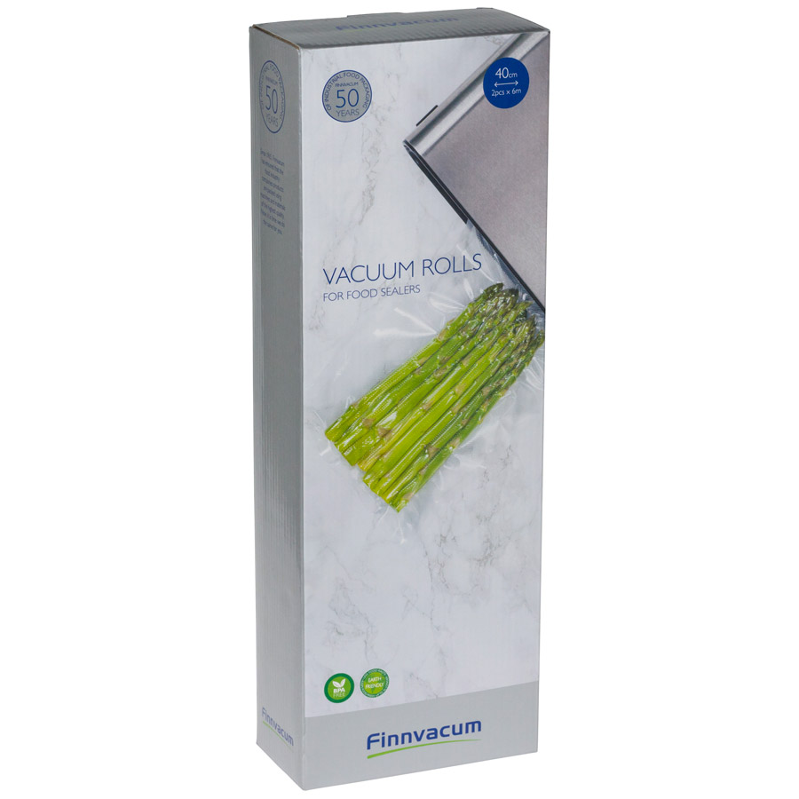 Vakuumirullat säilyttää elintarvikkeiden tuoreuden jopa viisi kertaa pidempään kuin perinteiset säilytysmenetelmät. Pakkauksessa 12 metriä (2 x 6m rullaa).