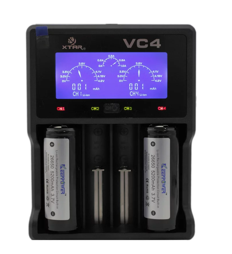 VC4 on täysin automaattinen Li-Ion- ja NiMH-laturi. Se säätää latausvirran akkujen mukaan. Voit ladata jopa 4 akkua samaan aikaan. Laturi ottaa virtansa USB-liittimestä. USB-liitännän virranantokyky vaikuttaa latausnopeuteen. Täysi nopeus saadaan vähintään 2A virtalähteellä (1-2 akkua). Laturi lataa 1-2 akkua 1A virralla. Jos akkuja on useampia, latausvirta puolittuu 500 mA:iin.