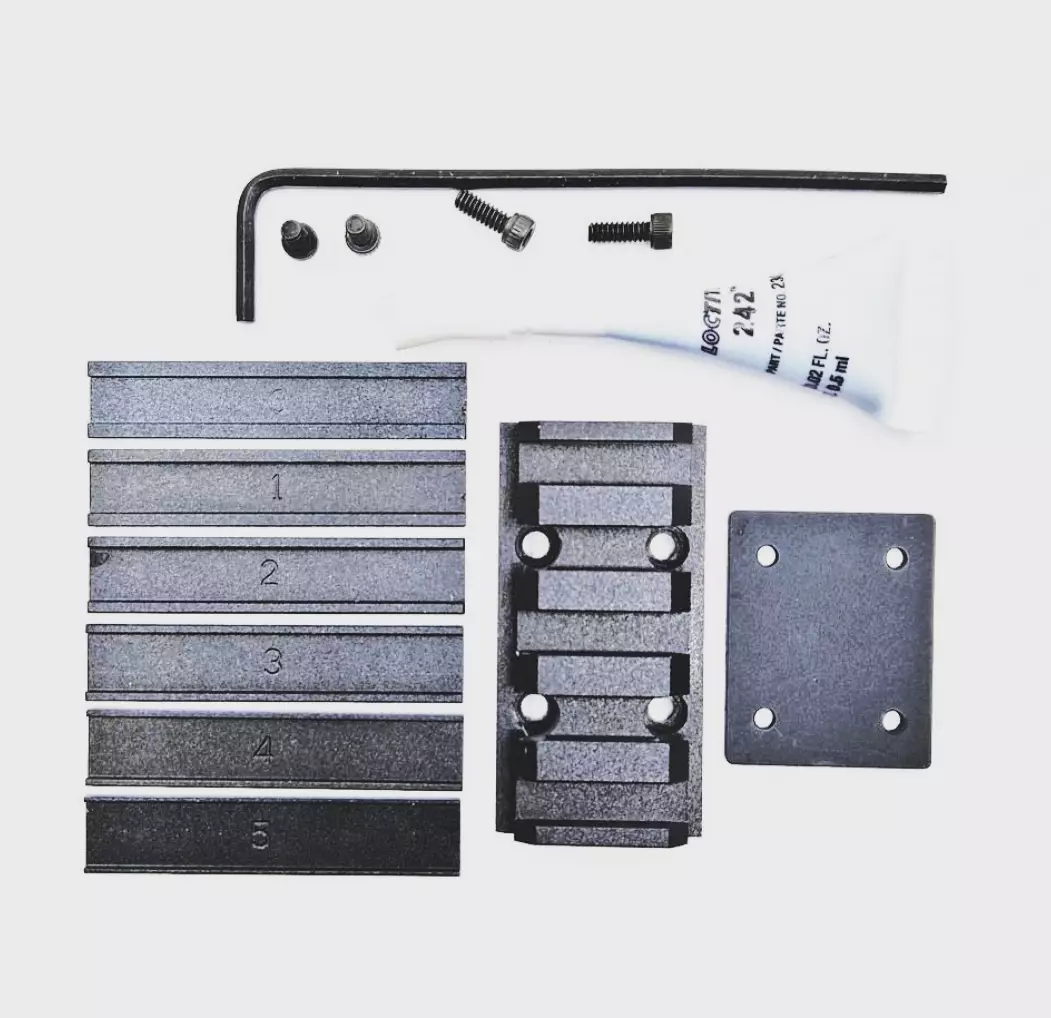 Picatinnykiskon yläpinta on 9mm kiskon yläpuolella. Picatinnykiskossa on 5 "slottia" ja kiskon kokonaispituus on 51mm. Sopii max. 9,8mm levyiselle tähtäinkiskolle ilman sovitinpaloja.