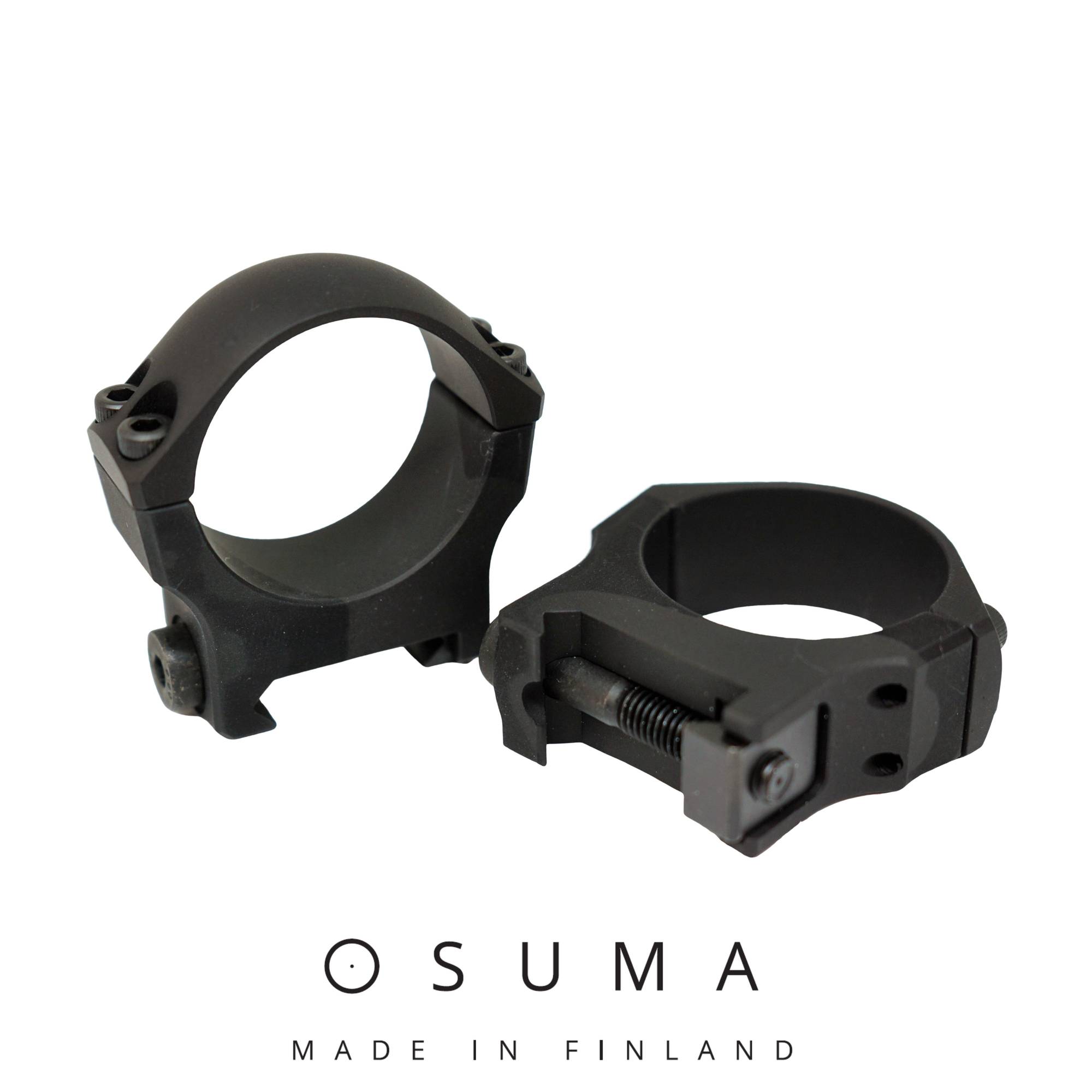 Laadukkaat suomalaiset Osuma-rengasjalat, jotka mahdollistavat 30mm runkoputkella varustetun kiikarin kiinnityksen suoraan Picatinny-kiskoon.- Paino: 70g
