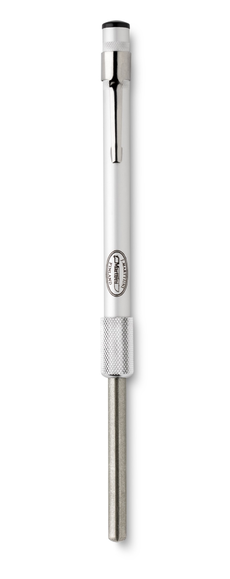 Tämä pienikokoinen teroitin kulkee näppärästi mukana ja varsinainen teroittava osa voidaan käytön jälkeen säilyttää kuoren sisällä. Kätevä taskuklipsi varmistaa teroittimen pysymisen paikallaan esim. juuri taskussa. Käytä teroittaessasi vettä, pese ja kuivaa teroitin käytön jälkeen.